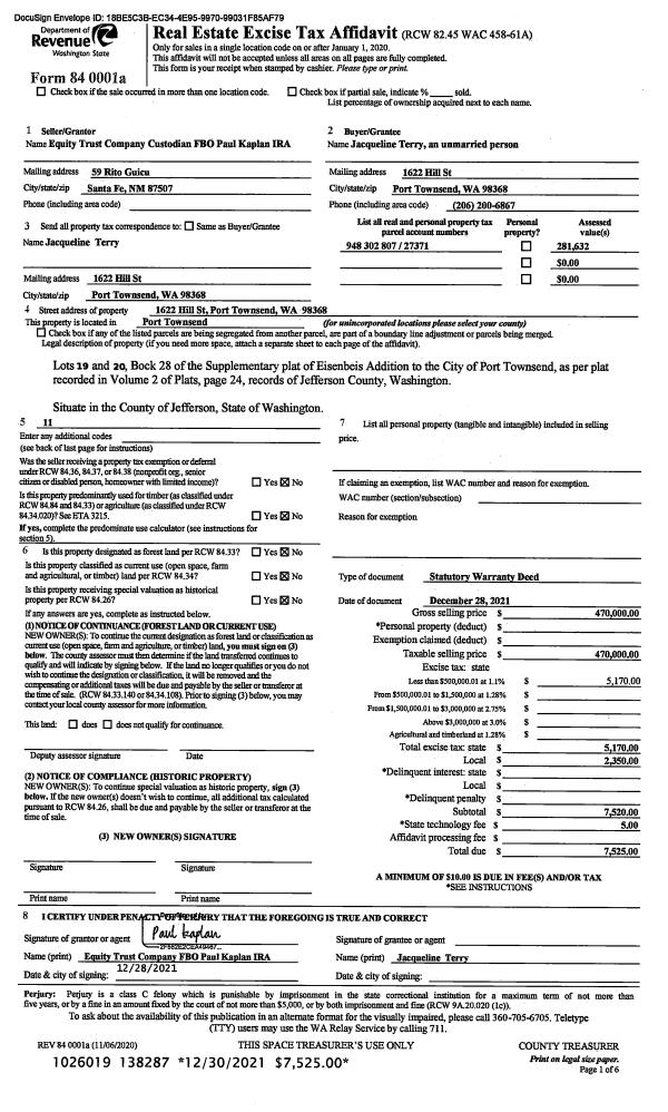 | Mailing Address: | PO BOX 1048 PORT HADLOCK, WA 98339-1048 | % Ownership: | 100.0000000000% |