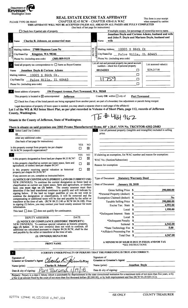 | Mailing Address: | 6150 CAPE GEORGE RD PORT TOWNSEND, WA 98368-9039 | % Ownership: | 100.0000000000% |