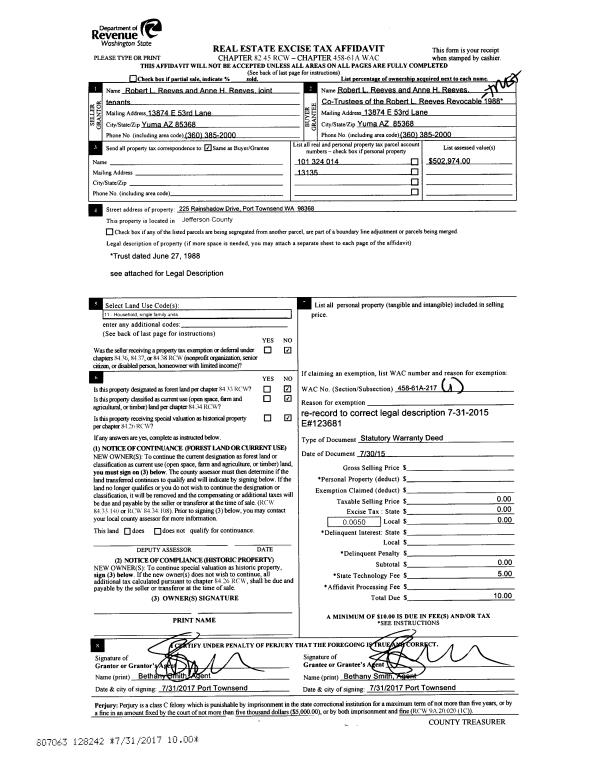 | Mailing Address: | 6644 CAPE GEORGE RD PORT TOWNSEND, WA 98368-9624 | % Ownership: | 100.0000000000% |