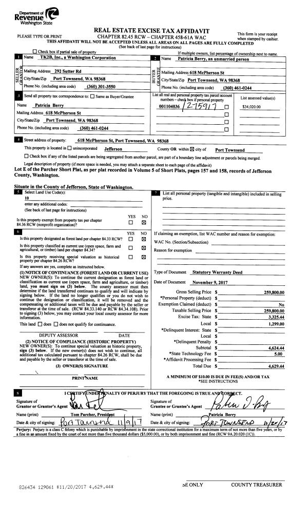 | Mailing Address: | SHARON ANN SHANNON JNT TEN W/SURVIVORSHIP PO BOX 226 PORT TOWNSEND, WA 98368-0226 | % Ownership: | 100.0000000000% |