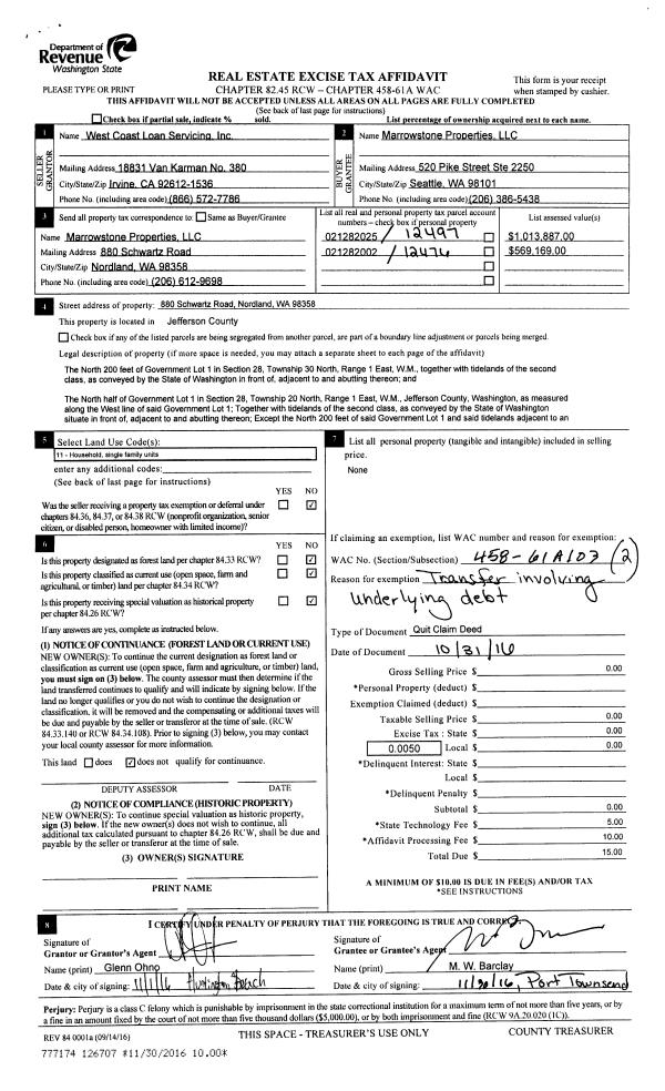 | Mailing Address: | ANDRE A WILSON TRUSTEE MARY F BOND TRUSTEE 6965 CAPE GEORGE RD PORT TOWNSEND, WA 98368-9235 | % Ownership: | 100.0000000000% |