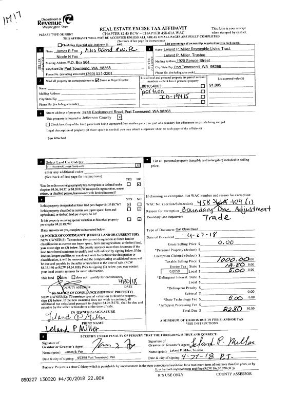 | Mailing Address: | KA & PA LAMBERTON / LJ BROWN W & B TWEEDIE 4242 S DISCOVERY RD PORT TOWNSEND, WA 98368 | % Ownership: | 100.0000000000% |