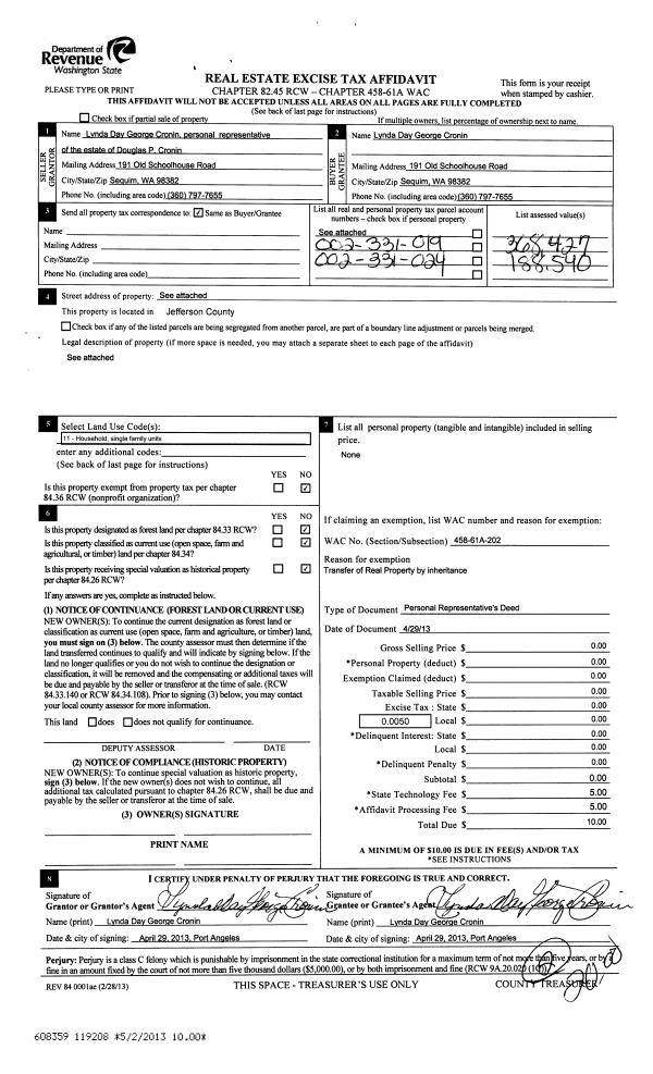 | 5 | 05/25/2007 | PRD | Personal Representatives Deed | PAGE, CATHERINE M ESTATE | PAGE, MICHAEL W, PAGE, JAMES R | | | $0.00 | 109404 | 0 |