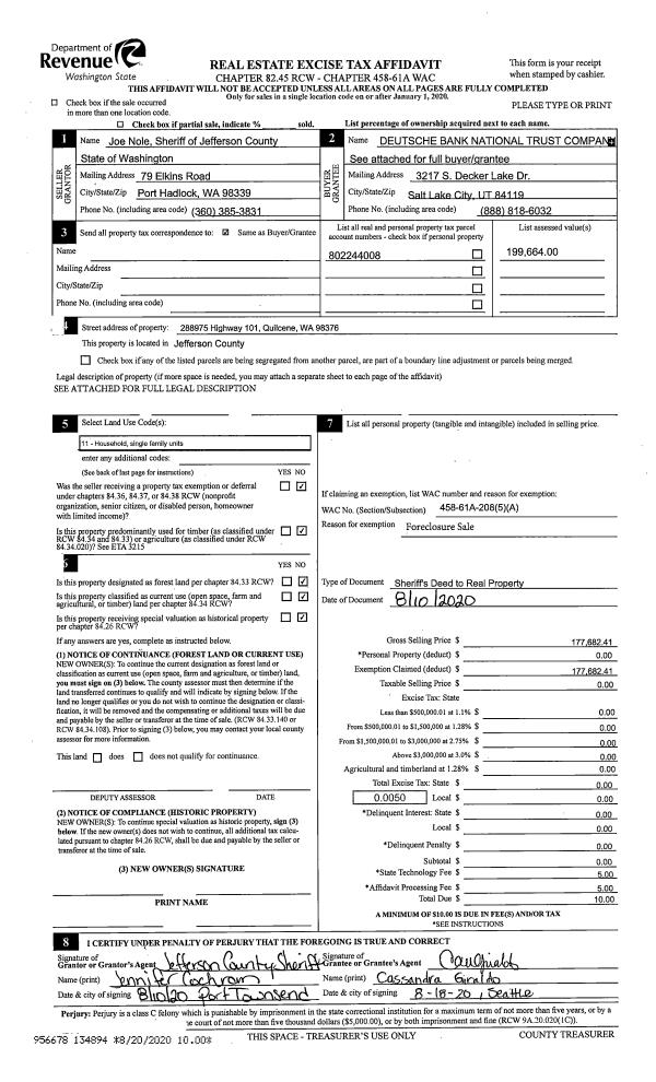 | Mailing Address: | SANDRA L LAU 150 ADELMA BEACH RD PORT TOWNSEND 98368-9605 | % Ownership: | 100.0000000000% |