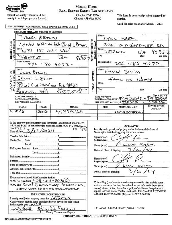 | Mailing Address: | MICHELE D SATHER 268 ADELMA BEACH RD PORT TOWNSEND, WA 98368-9605 | % Ownership: | 100.0000000000% |