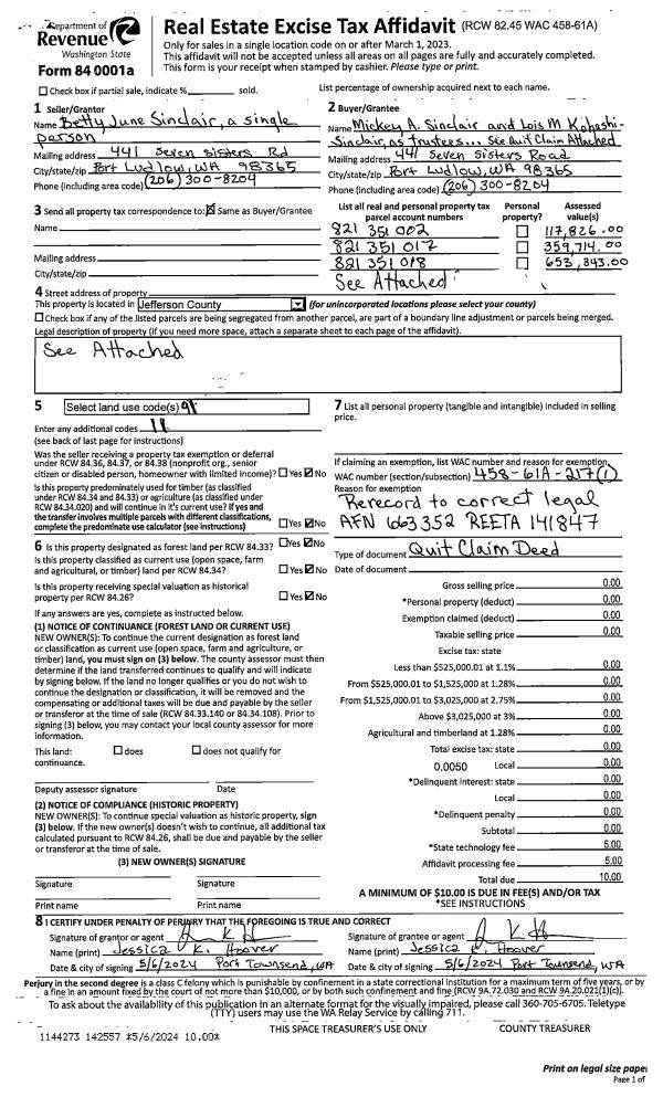 | Mailing Address: | CYNTHIA P JAYNE 440 ADELMA BEACH RD PORT TOWNSEND, WA 98368-9280 | % Ownership: | 100.0000000000% |