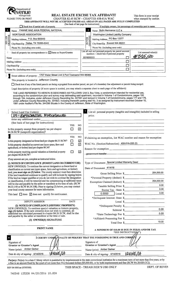 | Mailing Address: | 1240 W SIMS WAY #147 PORT TOWNSEND, WA 98368-3058 | % Ownership: | 100.0000000000% |