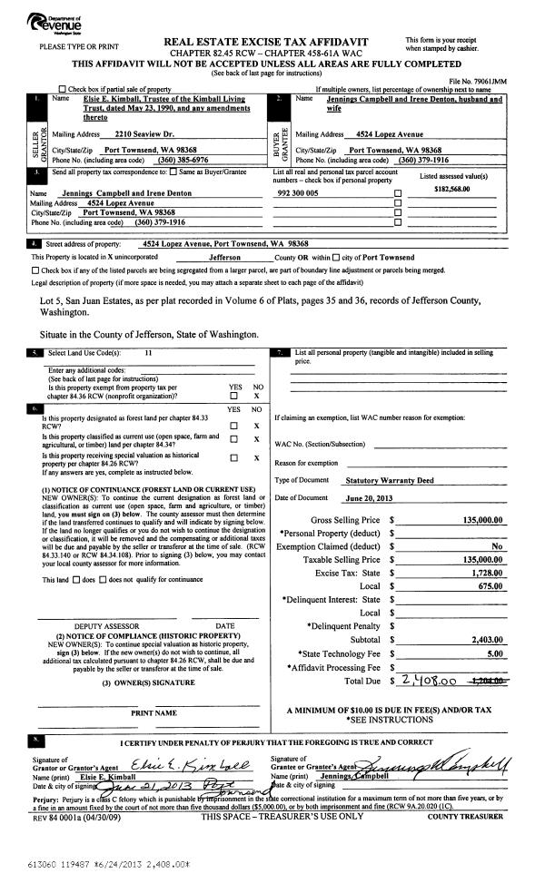 | 2 | 09/02/2014 | BSD | Bargain and Sale Deed | KITSAP BANK | DOUGLAS L JOYCE | | | $17,000.00 | 121834 | |