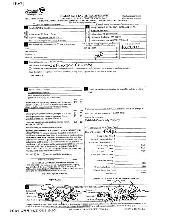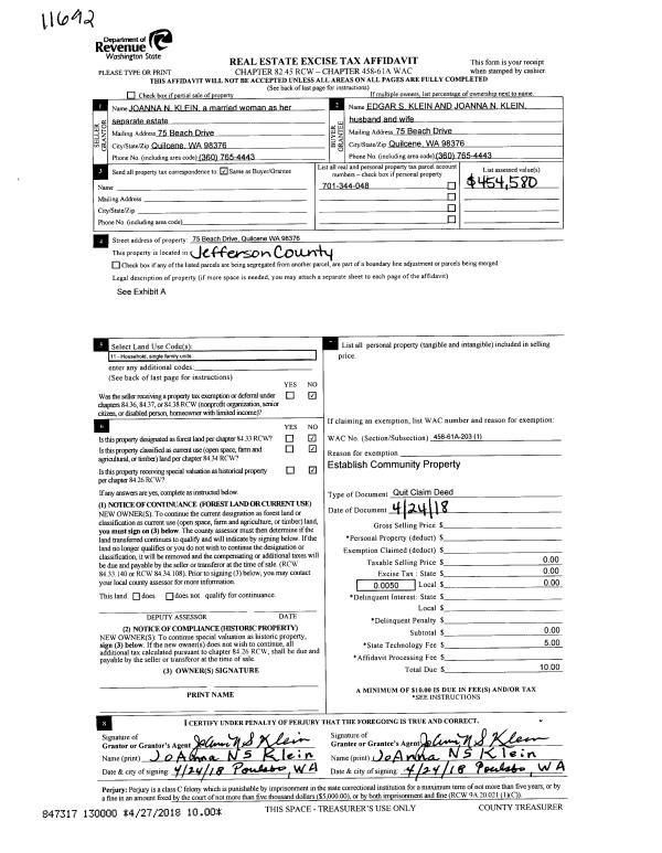 | 5 | 12/27/1994 | QCD | Quit Claim Deed | KENNEDY, CURTISS ROY/JR | KENNEDY, CURTISS R/JR & LANEA | 0 | 0 | $0.00 | 75909 | 0 |