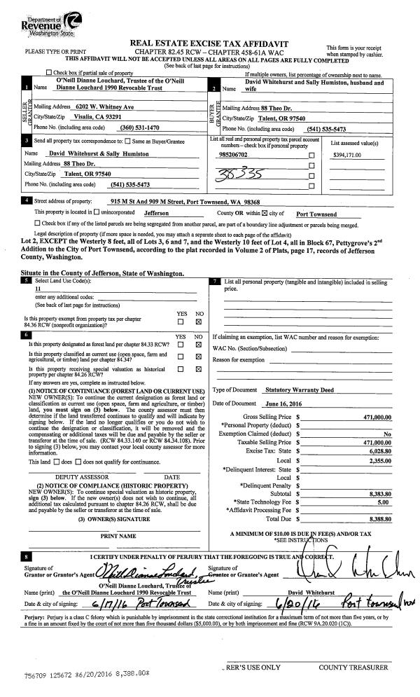 | 1 | 06/16/2016 | SWD | Statutory Warranty Deed | DENNIS E MC DANIEL TRSTE | ANTOINE MOTTET LIVING TRUST | | | $770,000.00 | 125671 | |