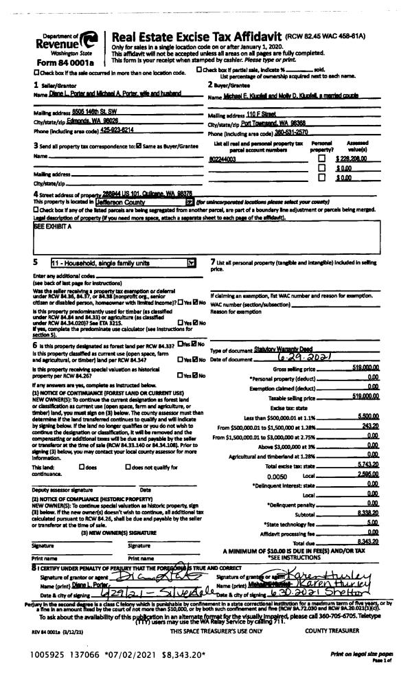 | Mailing Address: | 629 MCMINN RD PORT TOWNSEND, WA 98368-9004 | % Ownership: | 100.0000000000% |