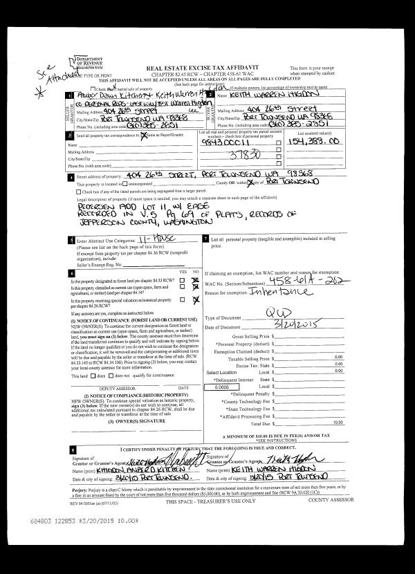 | Mailing Address: | 821 MCMINN RD PORT TOWNSEND, WA 98368-9006 | % Ownership: | 100.0000000000% |