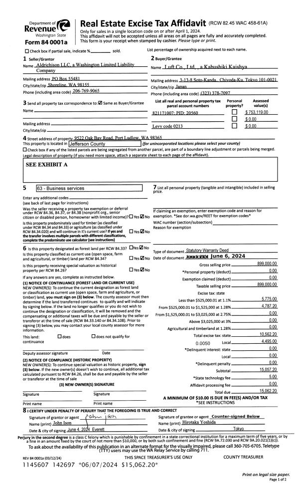 | Mailing Address: | JAMAN LIV TRUST 790 MCMINN RD PORT TOWNSEND, WA 98368-9005 | % Ownership: | 100.0000000000% |