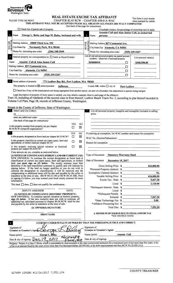 | 3 | 11/05/2013 | SWD | Statutory Warranty Deed | WILLLIAM R CLARK | ROGER & JOAN CREEL | | | $250,000.00 | 120259 | |