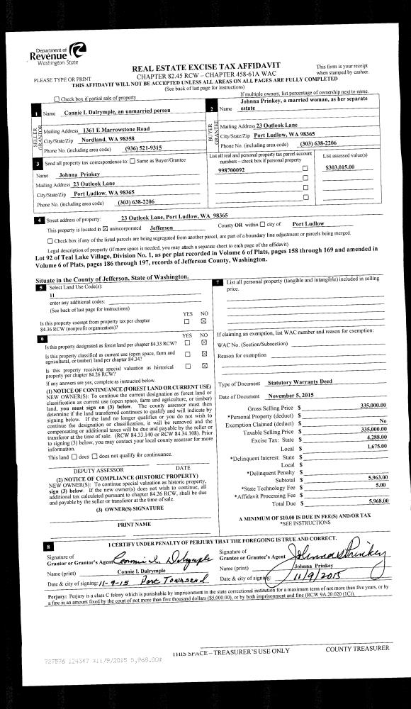 | 4 | 03/14/1995 | QCD | Quit Claim Deed | DRAKE, EDWARD G/JANET V | DRAKE, DOUGLAS G/ET AL | 0 | 0 | $0.00 | 76498 | 0 |