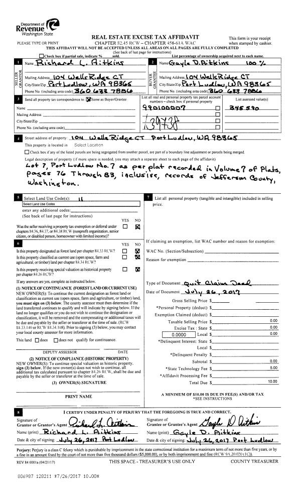 | Mailing Address: | 271 BAY RIDGE DR PORT TOWNSEND, WA 98368-9681 | % Ownership: | 100.0000000000% |