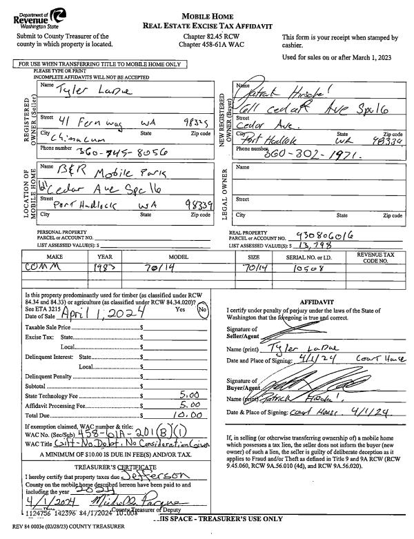 | Mailing Address: | 531 W 5TH ST PORT ANGELES, WA 98362 | % Ownership: | 100.0000000000% |