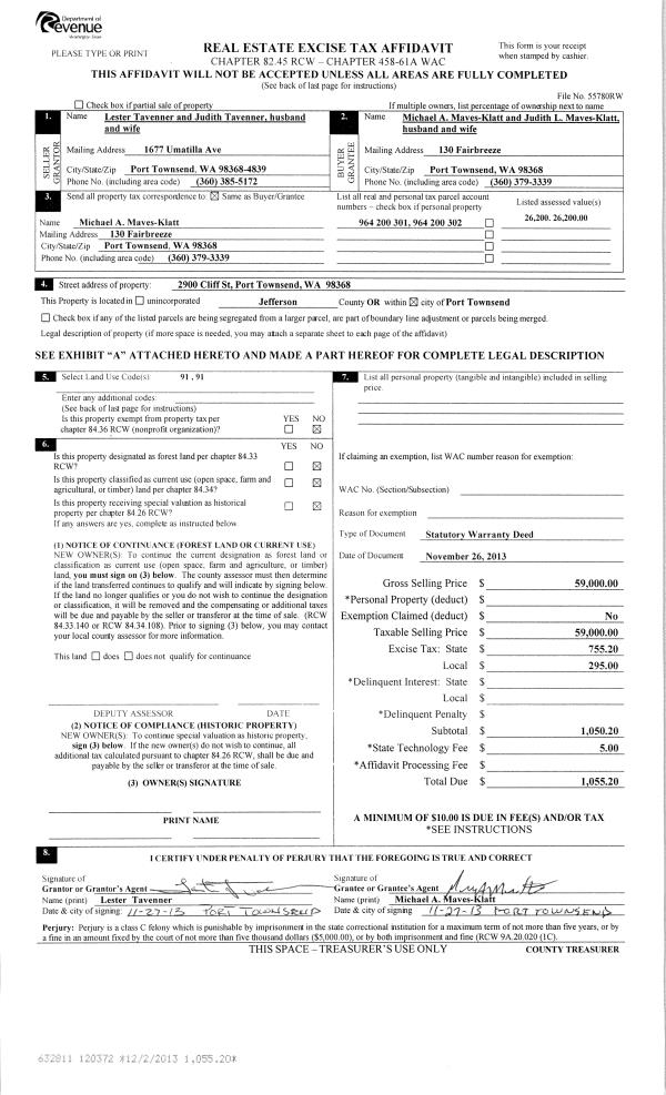 | Mailing Address: | 890 GARDINER BEACH RD SEQUIM, WA 98382-8751 | % Ownership: | 100.0000000000% |