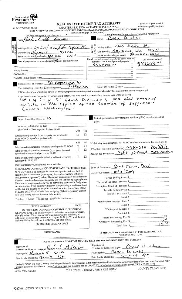 | Mailing Address: | 341 FARNSWORTH PL SEQUIM, WA 98382-8753 | % Ownership: | 100.0000000000% |