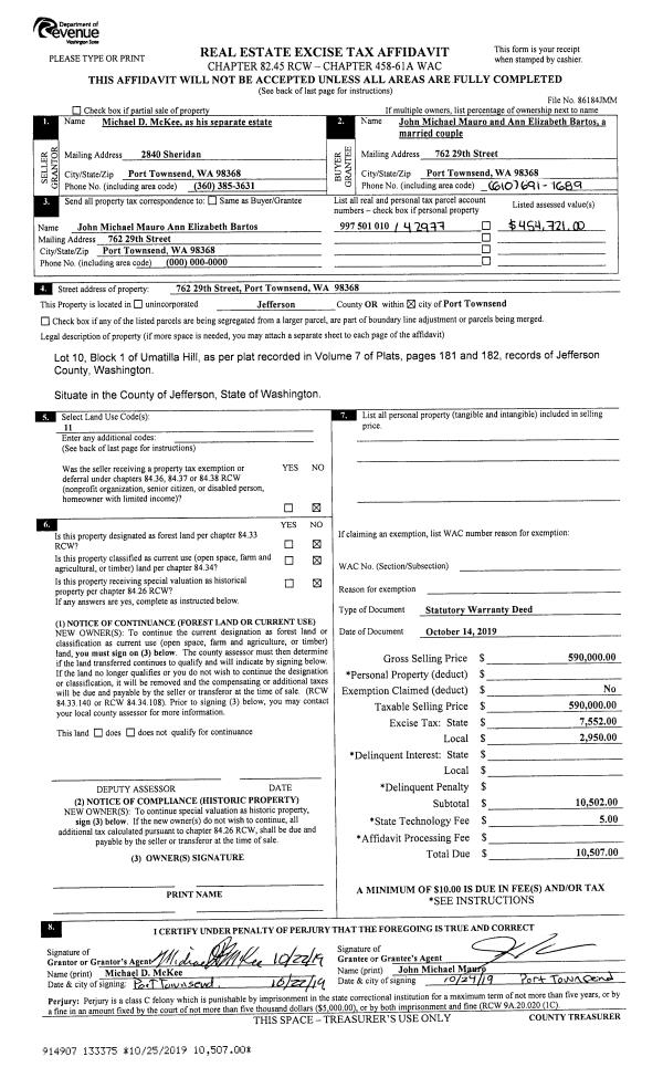 | Mailing Address: | 1640 GARDINER BEACH RD SEQUIM, WA 98382-8771 | % Ownership: | 100.0000000000% |