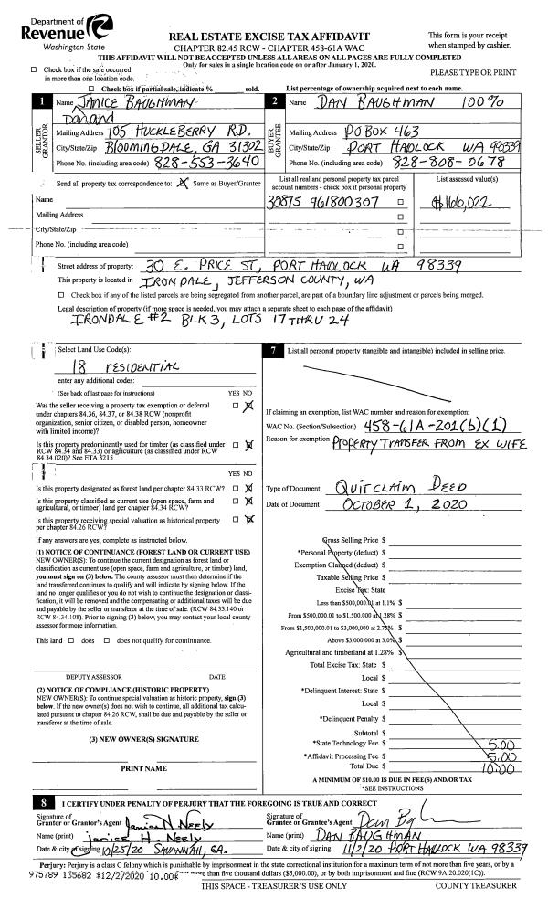 | 3 | 03/30/2001 | QCD | Quit Claim Deed | ARNOLD, JOYCE AS EXECUTOR | GRONLUND, SARA L, POINDEXTER, | 0 | 0 | $0.00 | 92079 | 0 |
