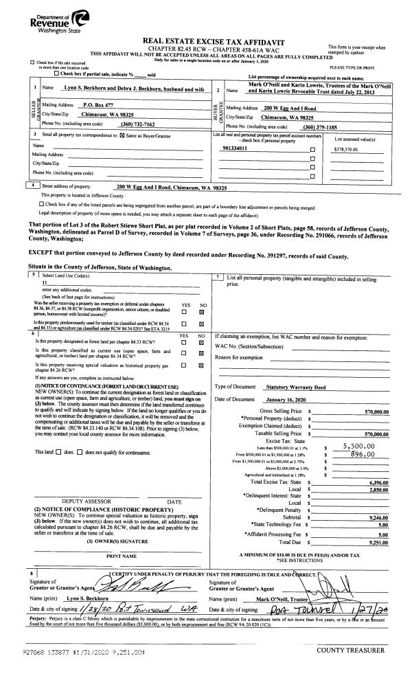 | Mailing Address: | 331 BACHELOR RD SEQUIM, WA 98382-8708 | % Ownership: | 100.0000000000% |