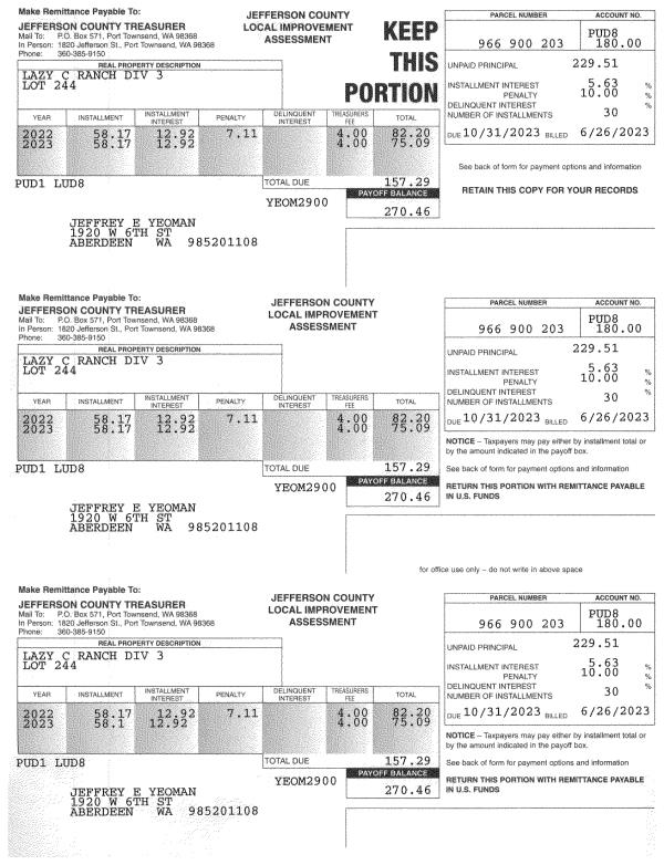 | 2023 | 2096 | PORTPT - PORT DISTRICT | $127.04 | $127.03 | $0.00 | $0.00 | $254.07 | $0.00 |
