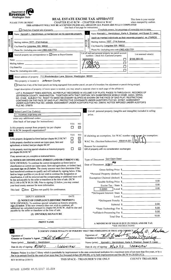 | 2 | 08/26/2015 | QCD | Quit Claim Deed | GARY A BANDY | GRETA M BANDY | | | | 124307 | |