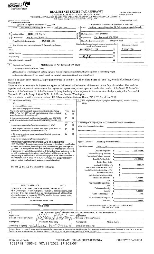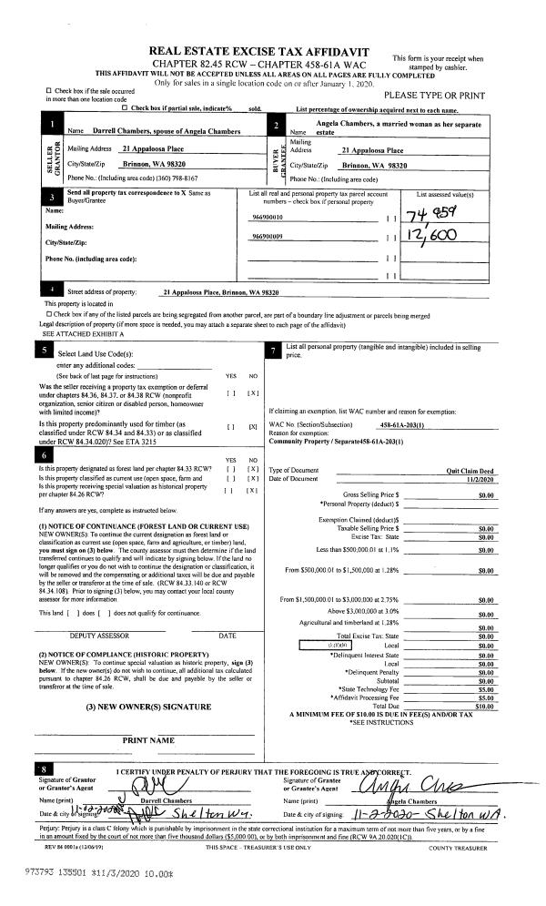 | Mailing Address: | 214 NEBEL DR SEQUIM, WA 98382 | % Ownership: | 100.0000000000% |