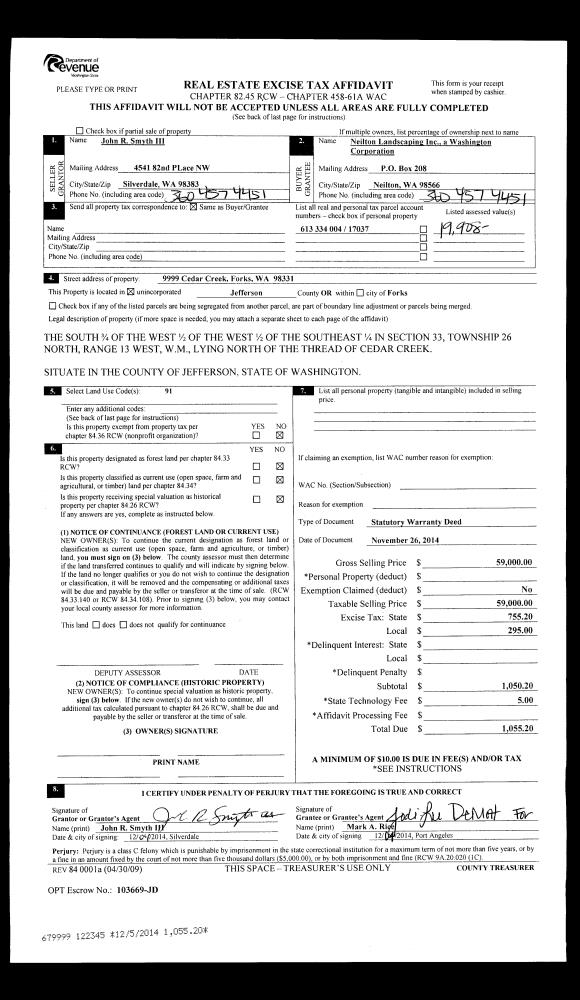 | Mailing Address: | W GEORGE SLINN TRUSTEE 385 GARDINER BEACH RD SEQUIM, WA 98382-8725 | % Ownership: | 100.0000000000% |