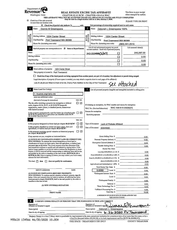 | 6 | 02/24/1994 | REC | Real Estate Contract | PORT TOWNSEND REALTY/ ET | CRAIG, DENNIS E/FAYE L | 0 | 0 | $31,000.00 | 73502 | 0 |