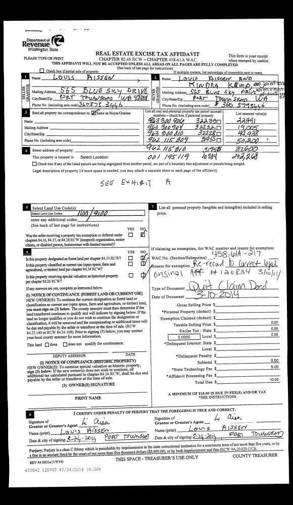 | 6 | 02/24/1994 | REC | Real Estate Contract | PORT TOWNSEND REALTY/ ET | CRAIG, DENNIS E/FAYE L | 0 | 0 | $31,000.00 | 73502 | 0 |