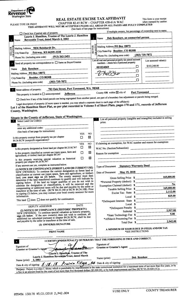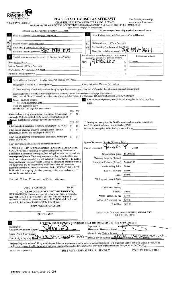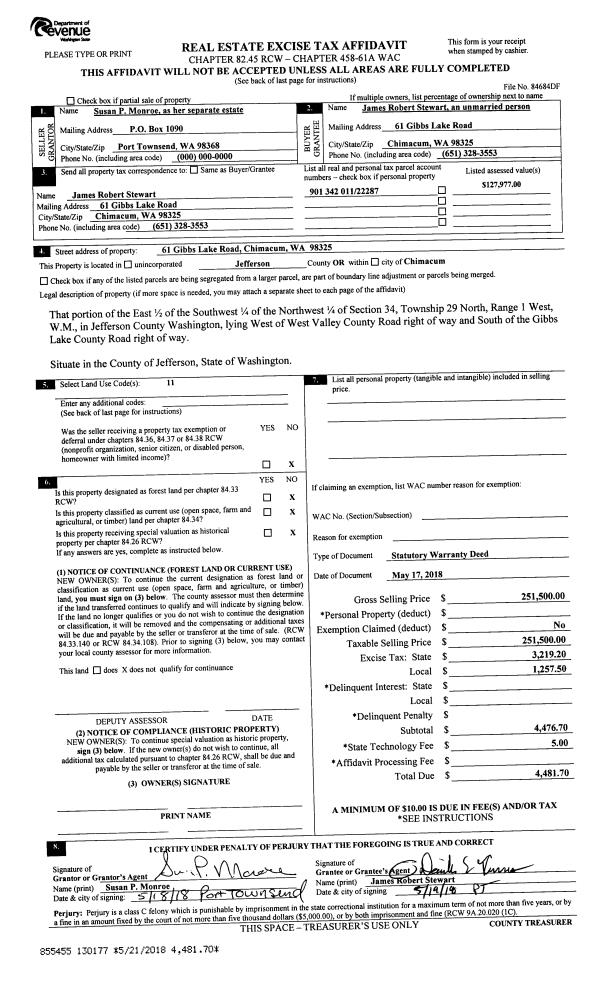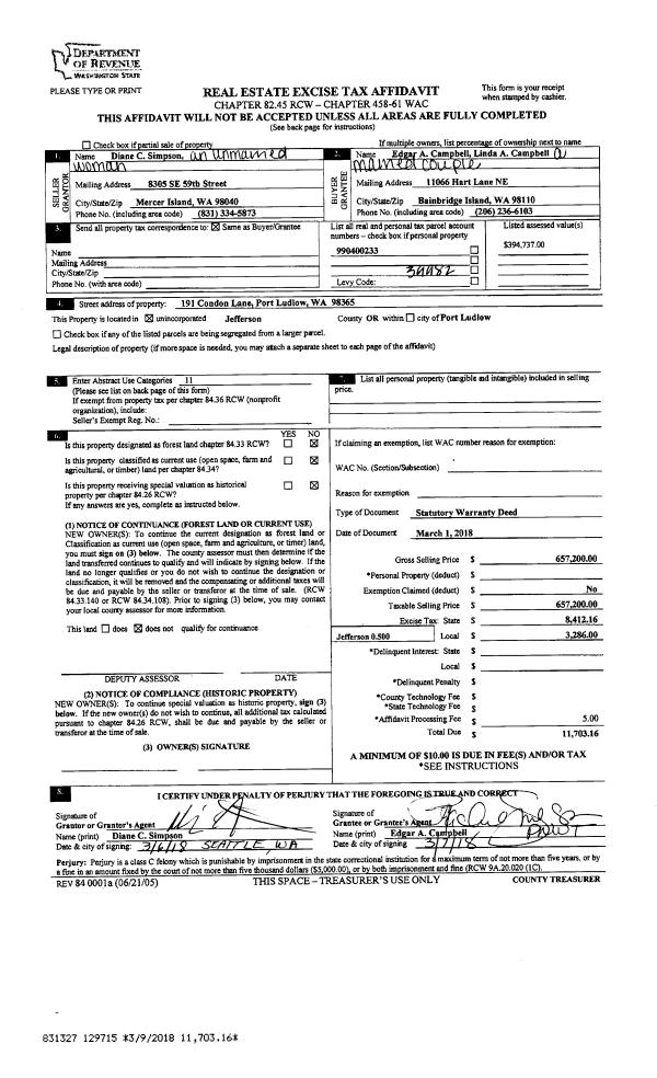 | 1 | 04/20/1925 | SWD | Statutory Warranty Deed | STATE OF WASHINGTON -FISH/WDLF | | 20 of DEEDS | 265 | | 0 | |