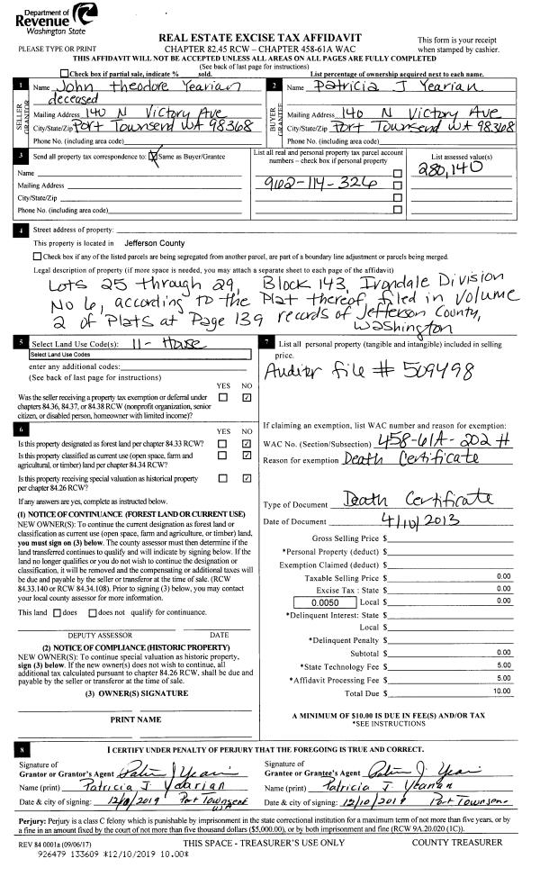 | 1 | 1330-1525F | Meidum/High Bank Wtrfrt on Dabob Bay | 0.0000 | 0.00 | 0.00 | 0.00 | 0.00 | $149,500 | $0 |