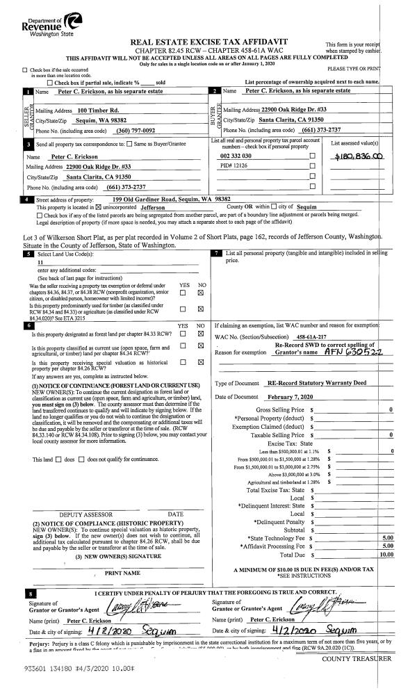 | 1 | 11/17/2020 | SWD | Statutory Warranty Deed | | | | | | 135686 | |
