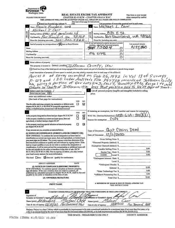 | 1 | 2230-1515F | Low Bank Wtrfrt on Dabob Bay/Hood Canal | 0.0000 | 0.00 | 0.00 | 0.00 | 0.00 | $270,250 | $0 |