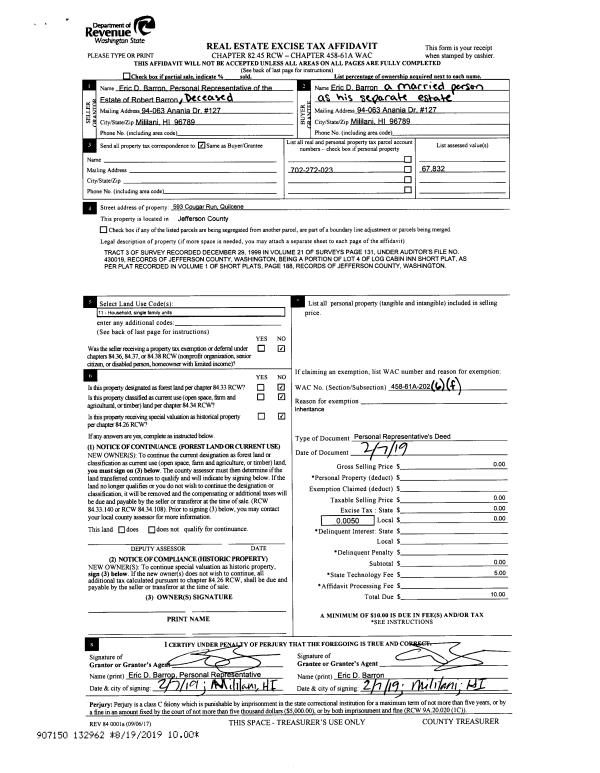 | 1 | 1330-1525F | Meidum/High Bank Wtrfrt on Dabob Bay | 0.0000 | 0.00 | 0.00 | 0.00 | 0.00 | $207,000 | $0 |