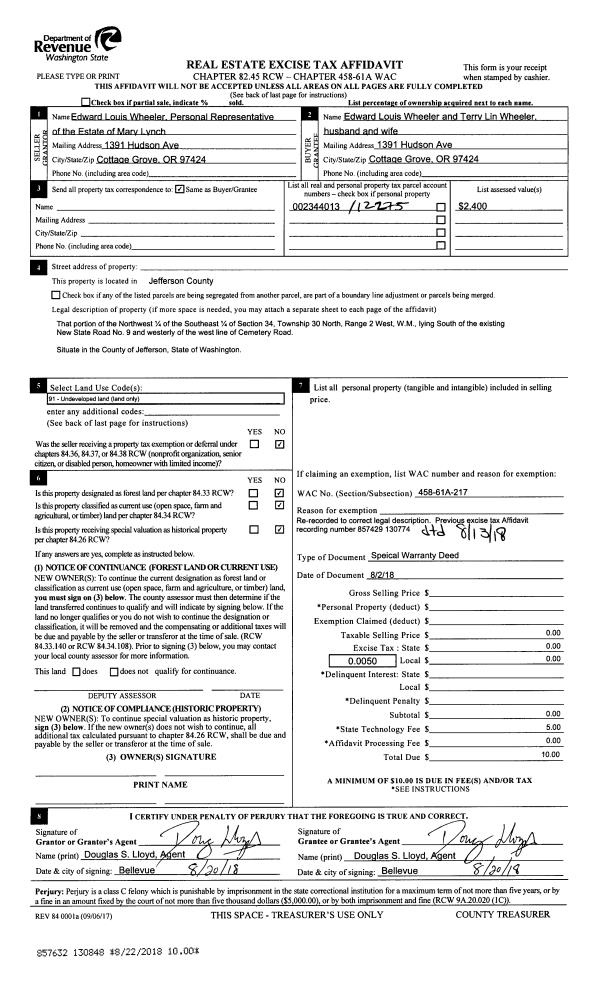 | 9 | 09/27/1994 | SWD | Statutory Warranty Deed | JACQUELYN SEA MARINE/DIRE | CAVISH, CARL E/JANIE C | 0 | 0 | $0.00 | 75261 | 0 |