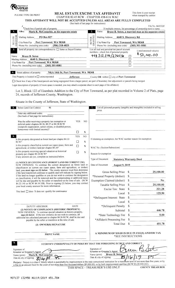 | 1 | 10/28/2013 | SWD | Statutory Warranty Deed | HARTMUT D LUTTER | JOHN M OSLAKE | | | $435,000.00 | 120245 | |