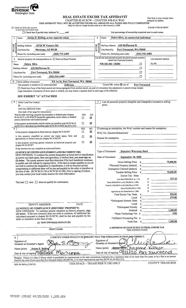 | 1 | 2250-1535F | High Bank Wtrfrt on Dabob Bay/Hood Canal | 0.0000 | 0.00 | 0.00 | 0.00 | 0.00 | $20,400 | $0 |