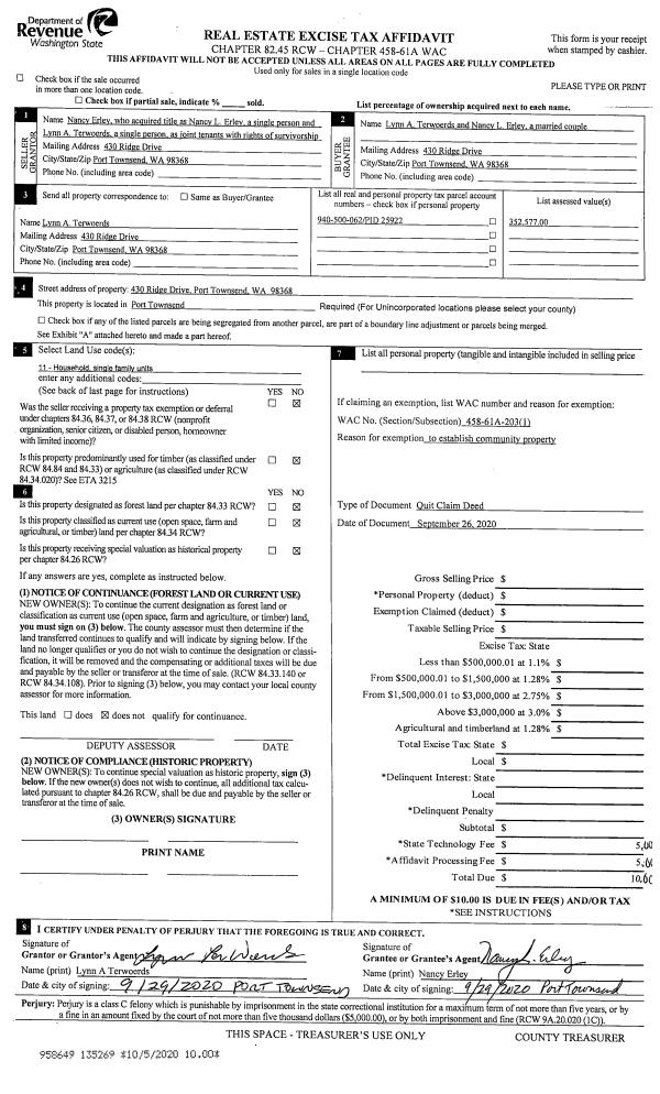 | Mailing Address: | 45 STARRY NIGHT PL QUILCENE, WA 98376-8610 | % Ownership: | 100.0000000000% |