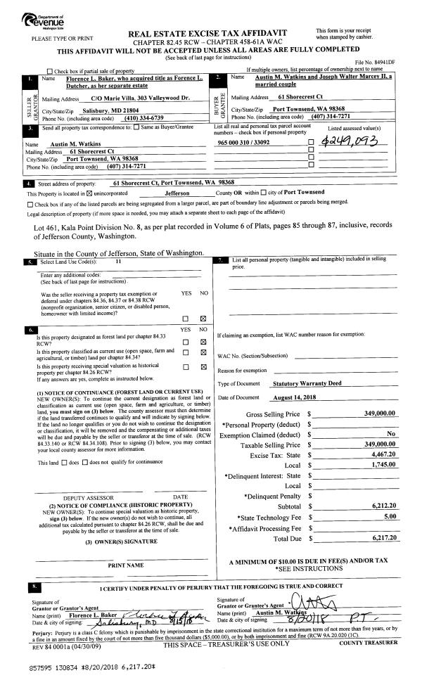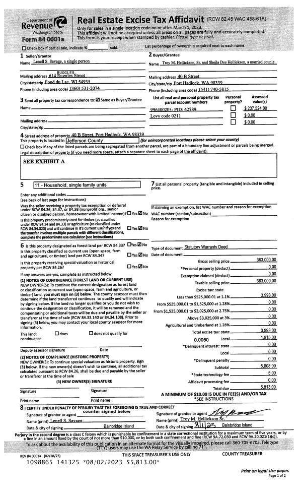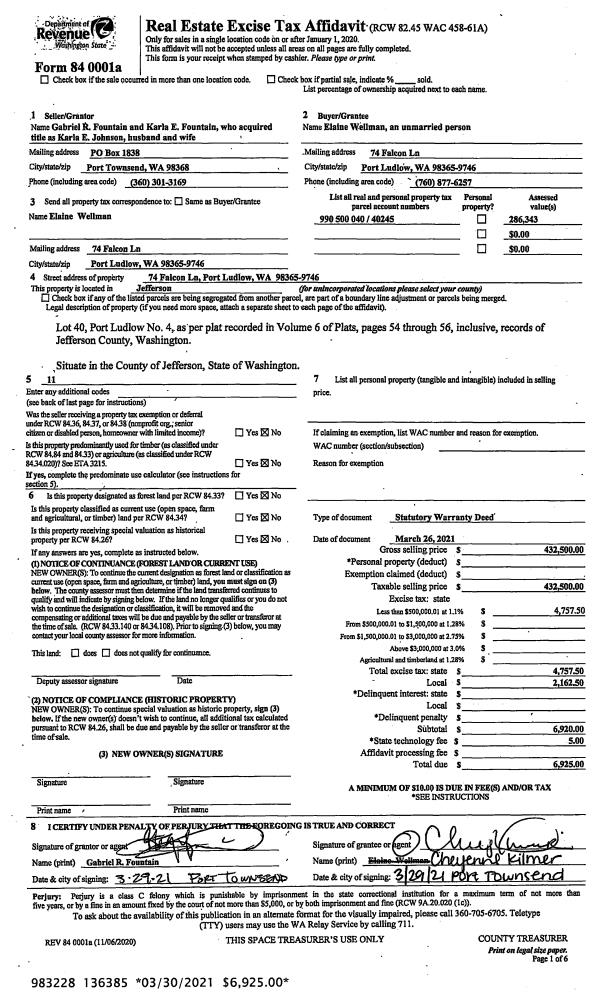 | 2 | 04/15/2019 | SWD | Statutory Warranty Deed | | | | | | 132498 | |
