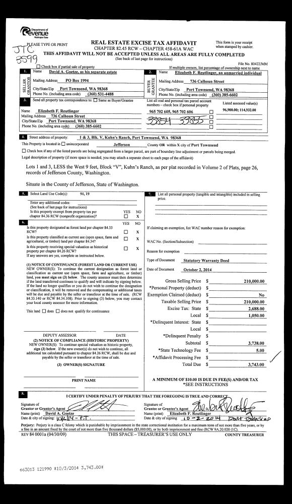 | 4 | 10/27/1999 | SWD | Statutory Warranty Deed | WHITNEY, WILLIAM E JR/LUC | TOANDOS VENTURES LLC | 0 | 0 | $0.00 | 88250 | 0 |
