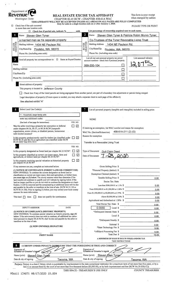 | 4 | 2250-1535F | High Bank Wtrfrt on Dabob Bay/Hood Canal | 0.0000 | 0.00 | 0.00 | 0.00 | 0.00 | $133,110 | $0 |