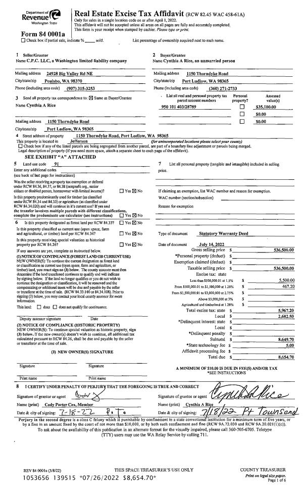| 1 | 02/08/2023 | SWD | Statutory Warranty Deed | DAVID B DISNEY | TERRY L BUDE | | | $35,000.00 | 140497 | |