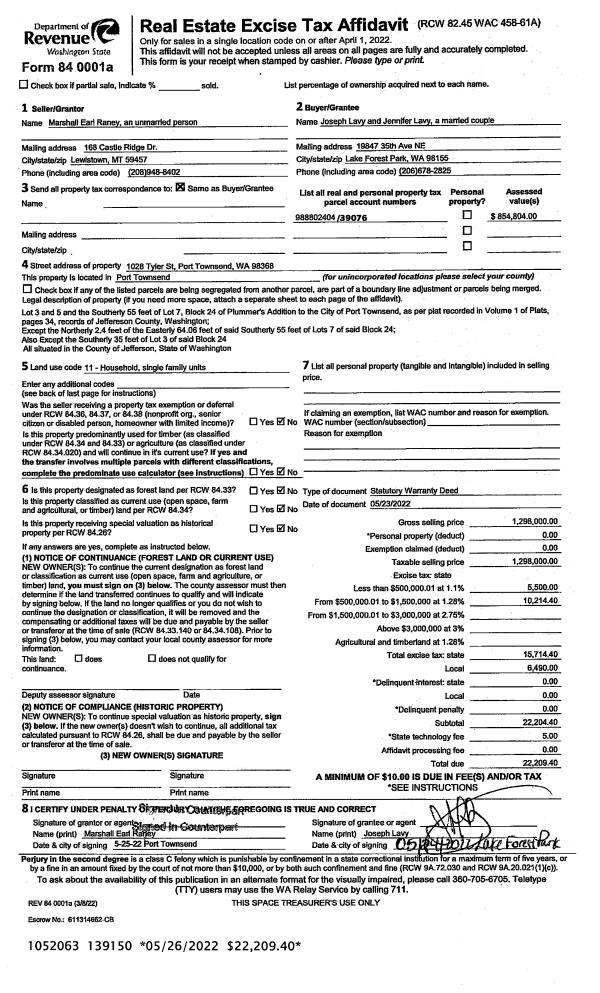 | Mailing Address: | 1132 GARFIELD ST PORT TOWNSEND, WA 98368-6513 | % Ownership: | 100.0000000000% |