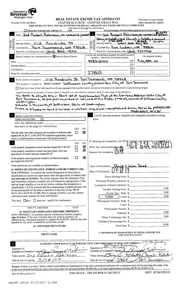 | Mailing Address: | 120 ALDER ST QUILCENE, WA 98376-9601 | % Ownership: | 100.0000000000% |