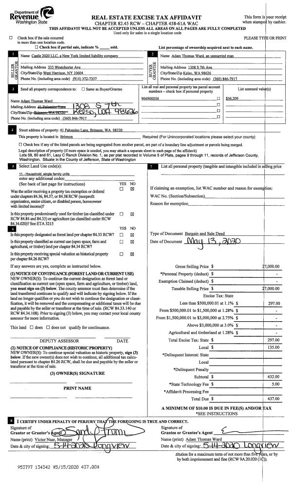 | Mailing Address: | 140 HAZEL POINT RD QUILCENE, WA 98376 | % Ownership: | 100.0000000000% |
