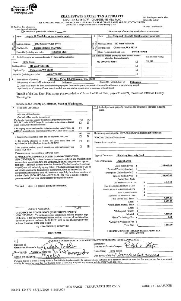 | Mailing Address: | 662 POINT BROWN AVE SE #934 OCEAN SHORES, WA 98569 | % Ownership: | 100.0000000000% |