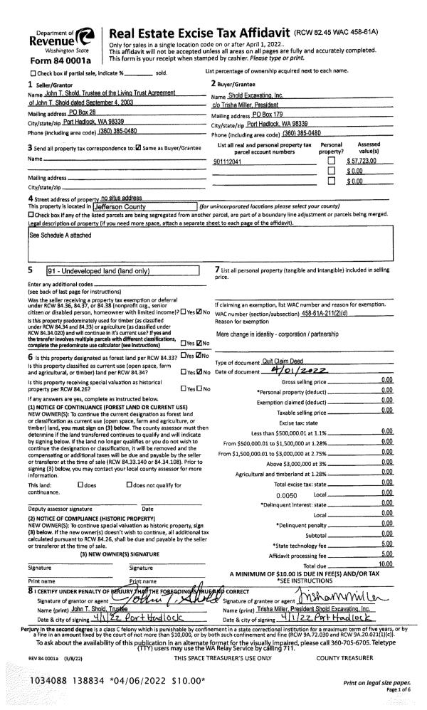 | Mailing Address: | 20 WOLF RD QUILCENE, WA 98376 | % Ownership: | 100.0000000000% |